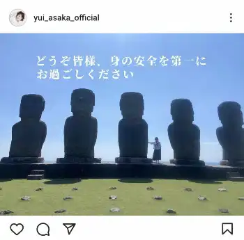 「余震のこと…まだまだこの先の心配事は尽きませんが、どうぞ皆様、なにがあってもご自身の身の安全を確保できるよう努めていきましょう」などと記すと、自身が宮崎・日南の「サンメッセ日南」に復元されたモアイ像の間にたたずむショットをアップ。「どうか何事もなく穏やかな日々でありますように」と願いを込めた。