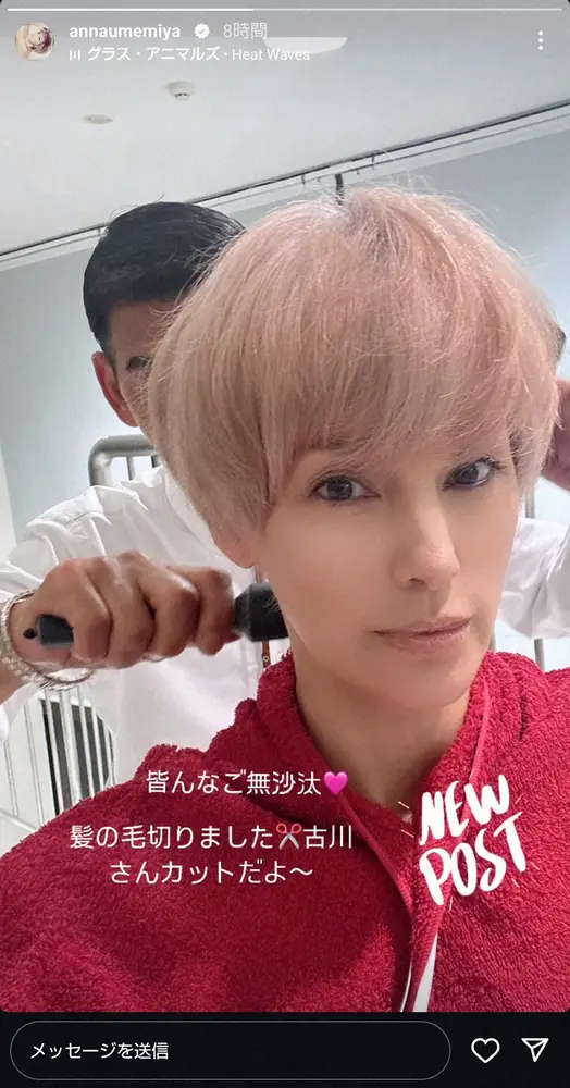 梅宮はストーリーズで「皆んなご無沙汰」と呼びかけ、「髪の毛切りました」と明るめのカラーになったショートヘア姿を公開した。
