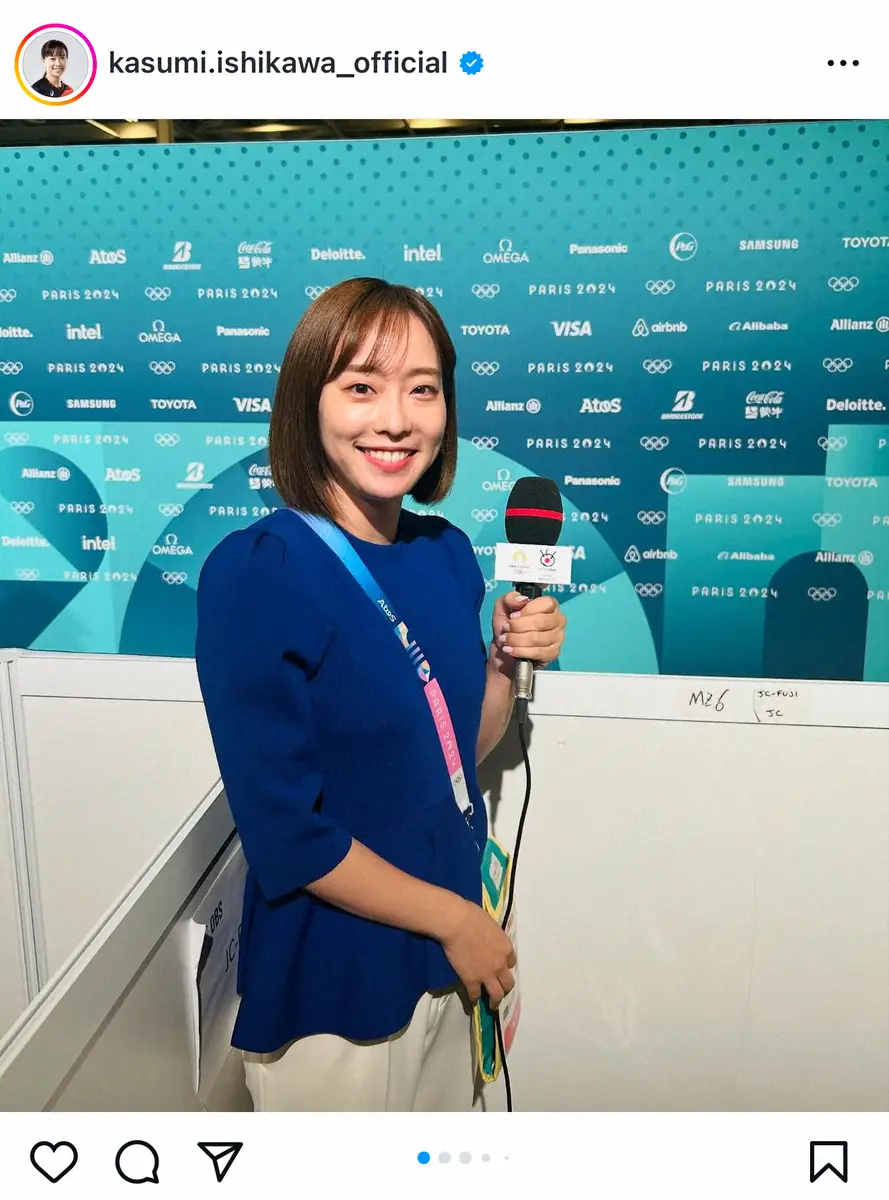 石川さんは「パリオリンピック、熱い戦いが幕を閉じました 4年に1度の大舞台、今回私はキャスターとして関わらせて頂きました」と報告。