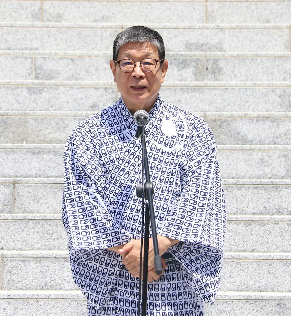 <圓朝忌>あいさつをする落語協会会長の柳家さん喬
