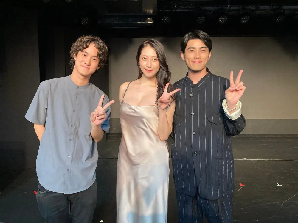 映画「SOUND of LOVE」の完成披露試写会に出席した左から吉川鮎太監督、染谷有香、樫尾篤紀