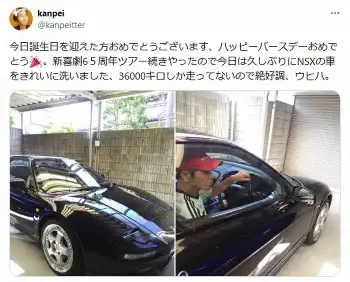 間は「新喜劇65周年ツアー続きやったので今日は久しぶりにNSXの車をきれいに洗いました」と報告。「36000キロしか走ってないので絶好調、ウヒハ」と、ピカピカに磨き上げられたホンダの名車NSXを公開した。