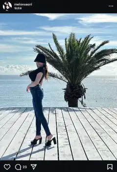 超人気モデルがラッシュガード姿を披露も「モジモジくん?」のツッコミ 長い手足が強調のオシャレデザイン