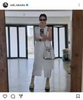 高岡早紀 ノースリーブのホワイトコーデ&“冷房対策”の意外なアイテムに「さすがの着こなし」の声