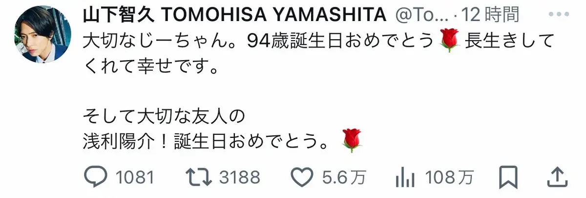 山下智久 山下智久「おめでとう」 日本から遠く離れた異国の地から大好きな二人へ“… ギャラリーで見る この記事のフォト 2024年08月15日の画像一覧 もっと見る 2024年08月15日の画像をもっと見る