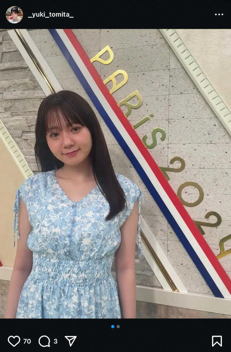 テレビ東京「ウイニング競馬」にレギュラー出演している同局の冨田有紀アナウンサー(26)が、15日までに自身のインスタグラムを更新。袖なしの花柄ワンピース姿を投稿した。
