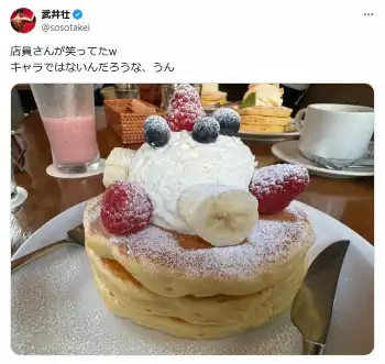 この投稿にフォロワーからは「ギャップ萌えですw」「これ1人で頼める勇気がすごいわ。食べたくても男1人やと頼めない…」「好きよ、こういうの笑」「美味しそう」「パンケーキを倒したんですね!」「胸焼けしそう……」「失礼やな ずっとプロテイン飲んでると思うなよ」などの声が集まった。