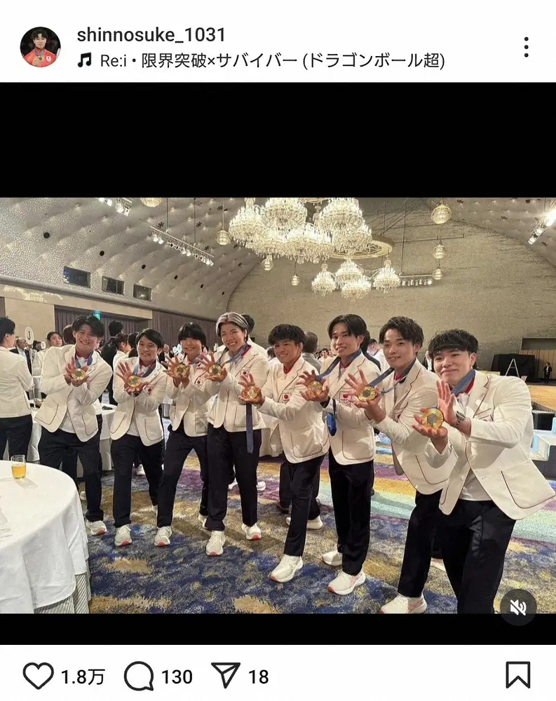 パリ五輪体操男子で3冠を獲得した岡慎之助(20=徳洲会)が17日までに自身のインスタグラムを更新。体操男子団体メンバー、レスリング金メダリストらとの“かめはめ波”ショットを披露した。