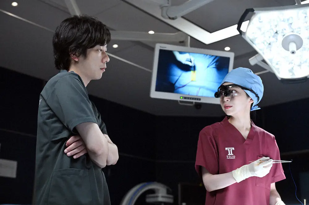 TBS系日曜劇場「ブラックペアン シーズン2」第6話で登場したワンシーン。「シーズン1」の主人公で天才外科医・渡海を演じた二宮和也と看護師・猫田を演じた趣里(C)TBS