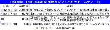 これまでSMAP、KinKi Kids、嵐、SUPER EIGHTが全国の5大ドームツアーを開催。なお、Kis―My―Ft2は札幌ではなく、埼玉・ベルーナドームを含む5大ドームツアーを行っている。