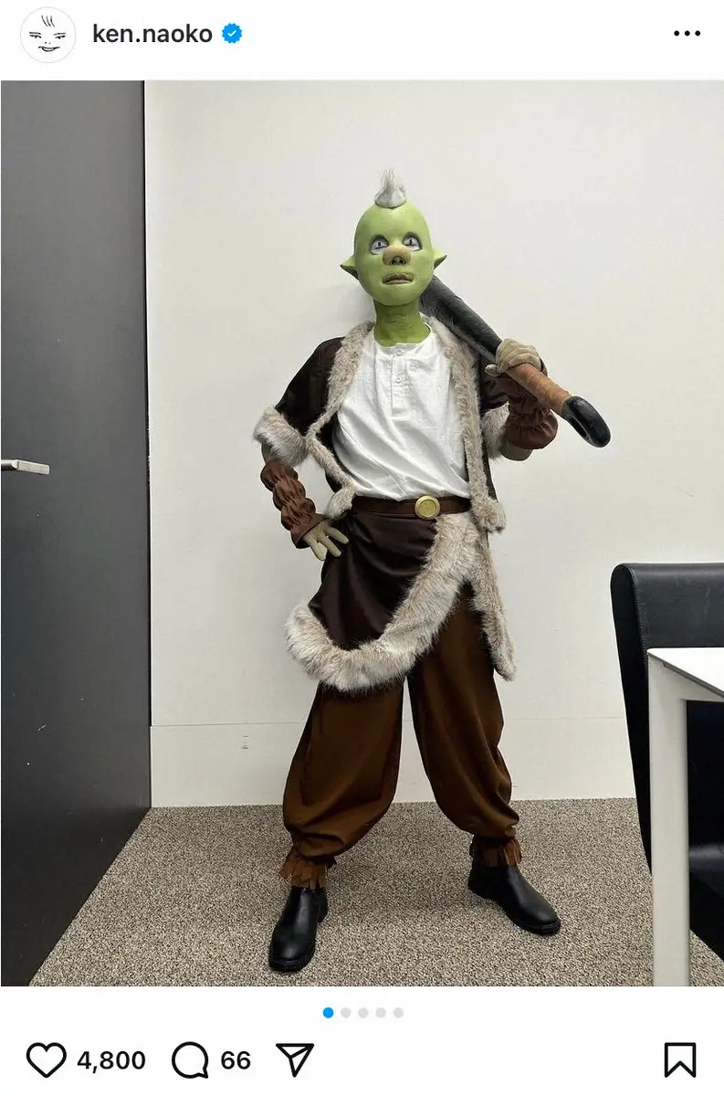 今回は「転生したらスライムだった件」の「ゴブタ」を披露。過去にも同番組内で、漫画ドラゴンボールのビルス、ギニュー、漫画デスノートのレムなどに扮している。