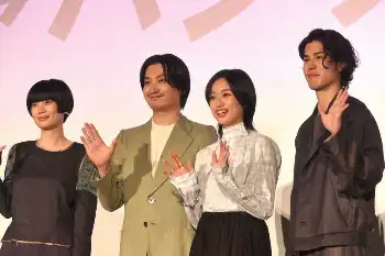 ジャパンプレミニ登場した(左から)山中瑶子監督、金子大地、河合優実、寛一郎