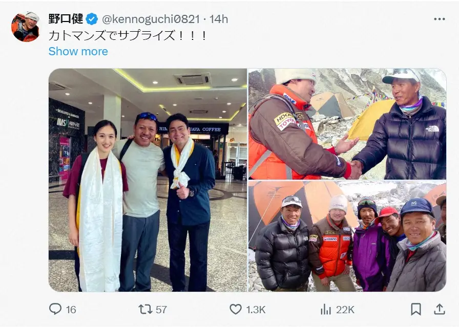 アルピニスト・野口健氏(50)が23日までに自身のX(旧ツイッター)を更新。21年ぶりに“戦友”と再会したことを報告した。