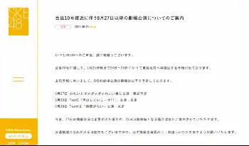 SKE48 台風影響懸念の27日劇場公演 25日時点では「実施予定」 28、29日公演は「未定」
