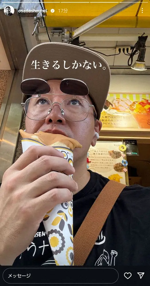さらに「区役所で手続き 書類不備で追い返される」と、区役所での手続きもうまく行かなかったことを報告。「生きづらい」と記したが、続く投稿で「生きるしかない」と、上空を見つめながらクレープにかぶりつく写真を公開した。