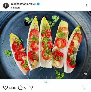中谷は「酷暑に食欲を削がれた日の食事です」とコメント。「コールラビのスライスにGrullのイクラ、ミックスナッツ、Tさんからいただいた黒生こしょう、チャービル、ディルに、コンディメントビアンコ(ホワイトバルサミコ)、オリーブオイル、京の九条の葱油少々、ゲランドのお塩のみ」とレシピを紹介した。