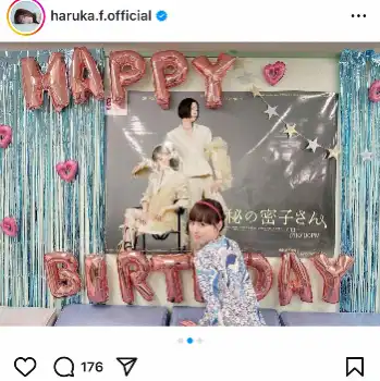 「昨日、26歳を迎えました」と書き出すと「当日は、マル秘の密子さんチームの皆さんにお祝いして頂きました」とカラフルなケーキを前に笑顔のショットを添えて報告。