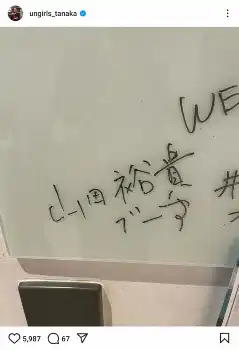 田中は「ワタナベの事務所にいったら、ホワイトボードに山田裕貴でーす。と書いてあった」とコメント。「確かに同じ事務所だけど、本物かなぁ」と、ホワイトボードの写真を公開した。