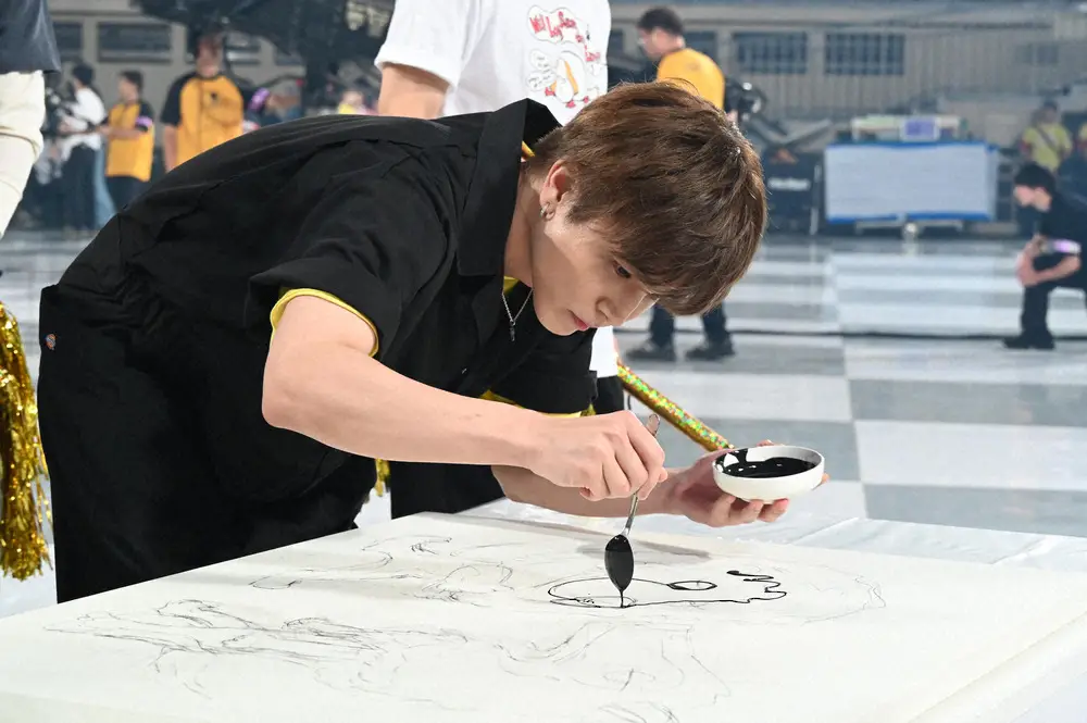 ライブペイントは、会場の日本武道館のステージでスタート。岩田は「プレッシャー感じますね。こんな多くの方の前で絵を描くのは経験ないですし、失敗が許されないプレッシャーの中で頑張ります」と意気込んだ。筆と比べてスプーンでの描画は「全然違いますね」と、勝手の違いを明かした。総合司会の「くりぃむしちゅー」上田晋也が「急きょ筆を持って来てもらえますか?」とスタッフに呼びかけたが、岩田は「ダメです。今日はスプーン縛りということで頑張ります」と、初志貫徹を誓った。
