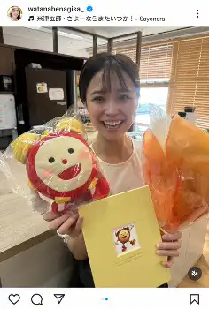 渡辺さんは笑顔で自身が出演していた「めざましテレビ」のマスコットと花束を手にした写真を投稿し「明日絶対に生きているという確証はみんなないから、やりたいことを先延ばしにせずやる。会いたい人に会う。伝えたいことはちゃんと言葉にする。我慢しない。自分が幸せと感じることを優先する。これが、私がこの一年で学んだことです!本当に人生が終わる時に『生きててよかったー!』と心の底から言えるように、これからも明るく、強く、前向きに生きていきます!」とつづった。