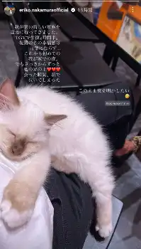 中村は昨年の11月に5歳のペルシャ猫「ONEKO」が突然亡くなったことを公表、大きなショックを受けていた。