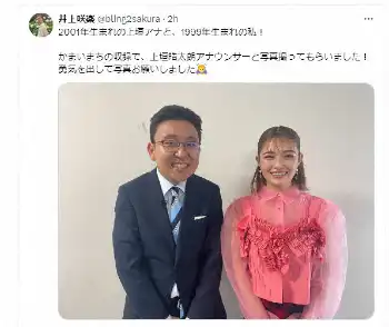 井上咲楽 新人なのに貫禄たっぷりと話題の男性アナと2ショット「旬な二人」「タレントとマネ」の声