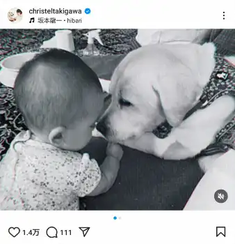 フリーアナウンサーの滝川クリステル(46)が2日、自身のインスタグラムを更新。昨年11月に出産した長女に愛犬「アリス」が寄り添う写真を披露した。