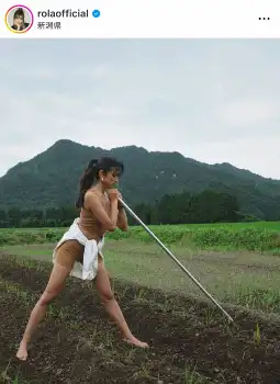 ローラ、肩出し&へそ出しで穂刈り体験 「美しすぎる」「素足気持ちよさそう」「虫に刺されちゃうよ~」