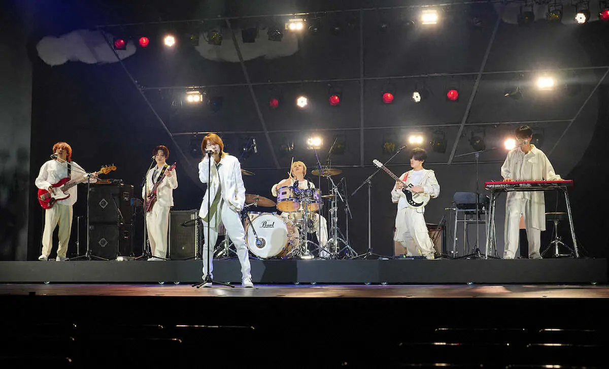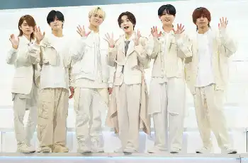 ゲネプロのワンシーン。(左から)7 MEN 侍の菅田琳寧、今野大輝、中村嶺亜、佐々木大光、矢花黎、本高克樹(撮影・木村 揚輔)