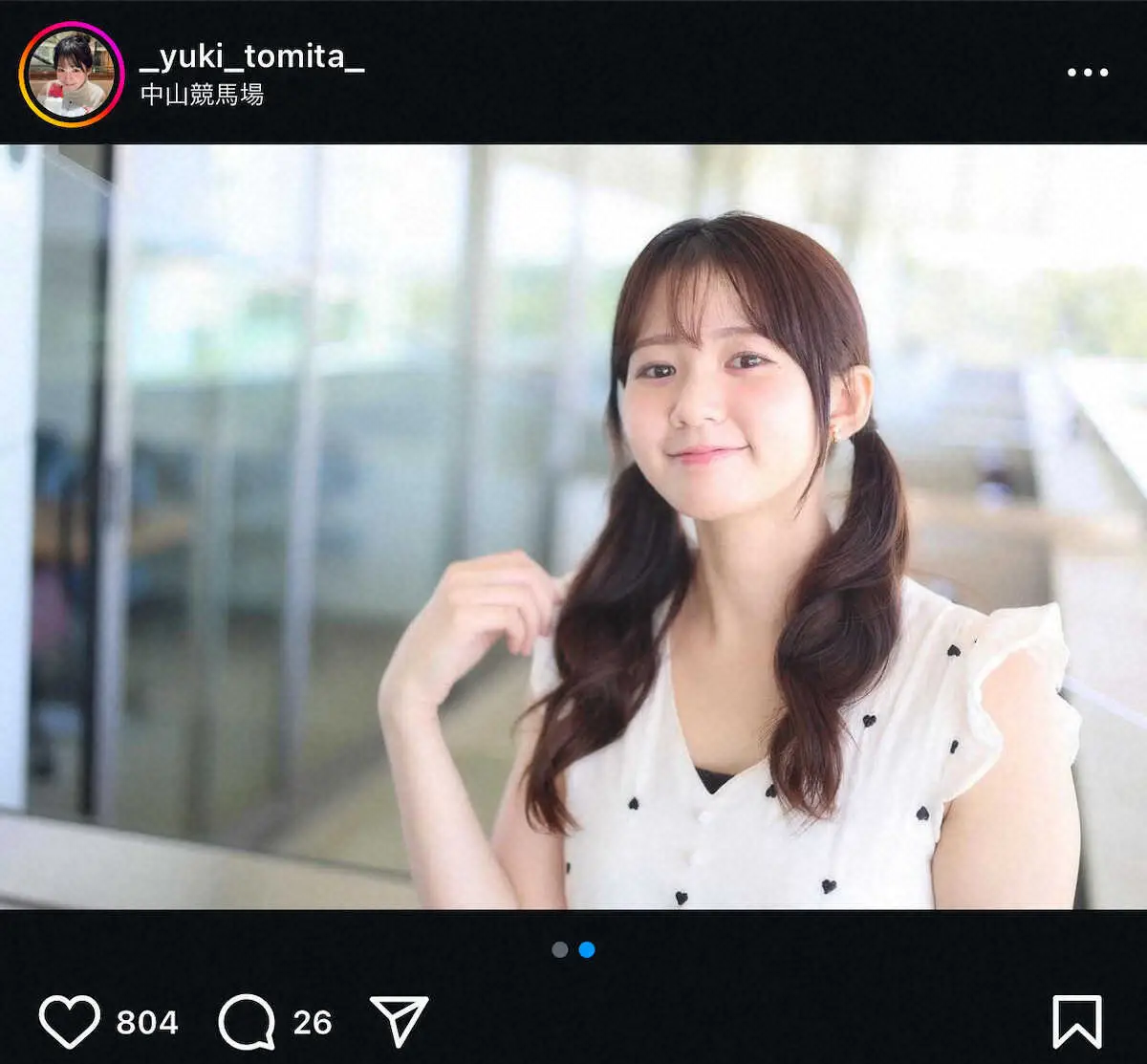 テレビ東京「ウイニング競馬」にレギュラー出演している同局の冨田有紀アナウンサー(26)が、7日までに自身のインスタグラムを更新。同番組で来ていたハートドット柄の白ノースリーブワンピース姿を投稿した。