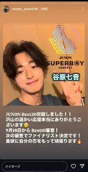 「谷原章介の長男」報道の谷原七音さん、ジュノンボーイBEST20入りを報告 ファイナリストへあと一歩