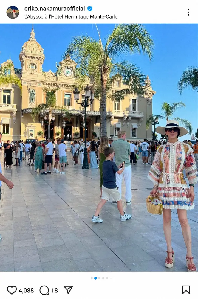 中村は「8月初めにMonacoに行ってきました」とコメント。「いつ以来だろう?南仏の我が家からは高速を使うと車でおよそ45分くらい。パリで大好きだったお寿司のlabysse_parisのシェフ岡崎さんがモンテカルロにお店をオープンしたので、お祝いに夫と行きました」と報告した。