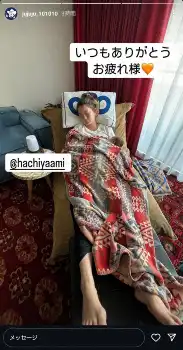 蜂谷は4日前、ストーリーズで「5時にバトンタッチ ベビーバーグをお願いします」と、井戸田が長男を抱いて眠る姿を投稿。「5:08」の表示とともに、「エルゴの授乳クッションで固定されてる 最近ベビーベッド置くと10分で泣いて起きちゃうので夜はこのスタイルでおやすみ」とつづっていた。