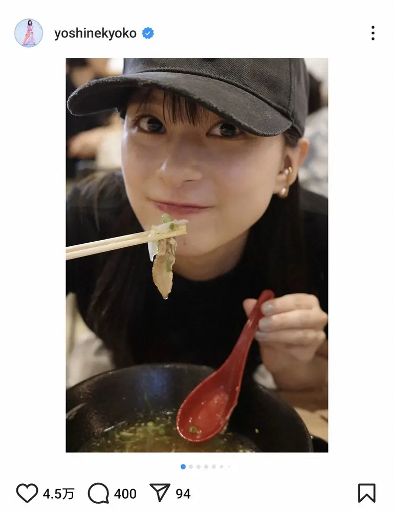 前回の投稿は7月だったため「久しぶりの更新になってしまいました!元気です!みなさんお元気ですか?食べてる芳根が集まりました!」とつづると、ラーメンを食べる姿などを複数枚アップ。
