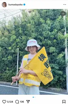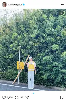 タレントの熊田曜子(42)が11日、自身のSNSを更新。黄色いベストを着て、交通当番する姿を公開し、注目を集めている。