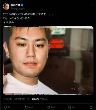 なだぎは自身のXで「ザコシのわっかい時の写真出てきた、、、」と投稿。