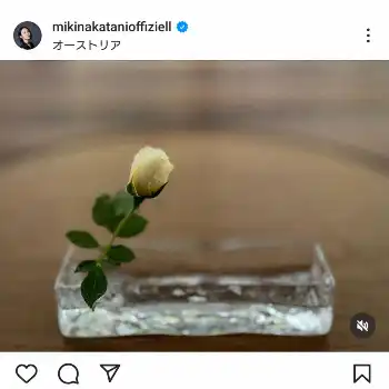 中谷はオーストリアの自宅の「庭のホワイトローズです。わずかにほころびかけた蕾が美しかったので、『お姉ちゃま、野のお花を生けて』と、綾瀬はるかさんからいただいたYALI GLASS の花器に入れてみました」と紹介。