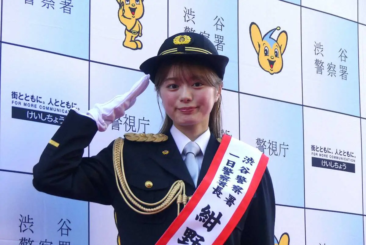 モデルで女優の紺野彩夏(25)が11日、警視庁渋谷署の一日署長を務めた。