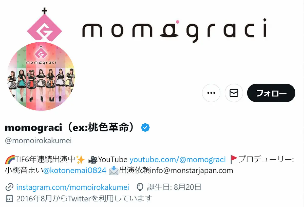 また「2016年に『桃色革命』とし結成。コロナ禍を経て2021年より『momograci』に改名して今日まで活動しておりました。今夏には6年連続のTOKYO IDOL FESTIVALに出演するなど、数多くのアイドルがいる中、このような結果を出せている事は、メンバーの尽力そして何よりも応援してくださっているお客様のおかげでございます。ありがとうございました」と、これまでの活動を振り返るとともに感謝を記した。