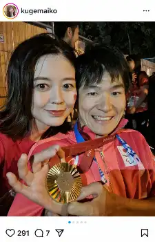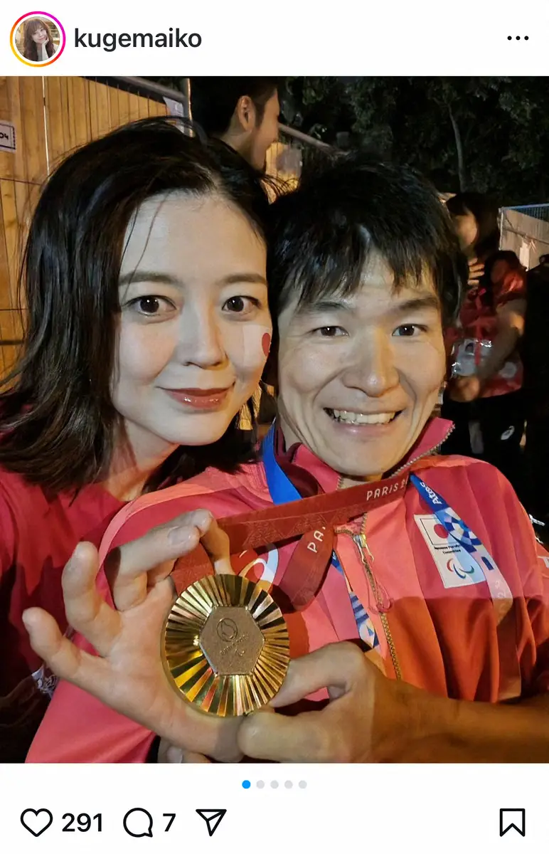 フリーアナウンサーの久下(くげ)真以子(39)が11日、自身のインスタグラムを更新。パリパラリンピック、車いすラグビーで悲願の金メダルを獲得した夫で、同競技日本代表の羽賀理之(39)とのツーショットを公開した。