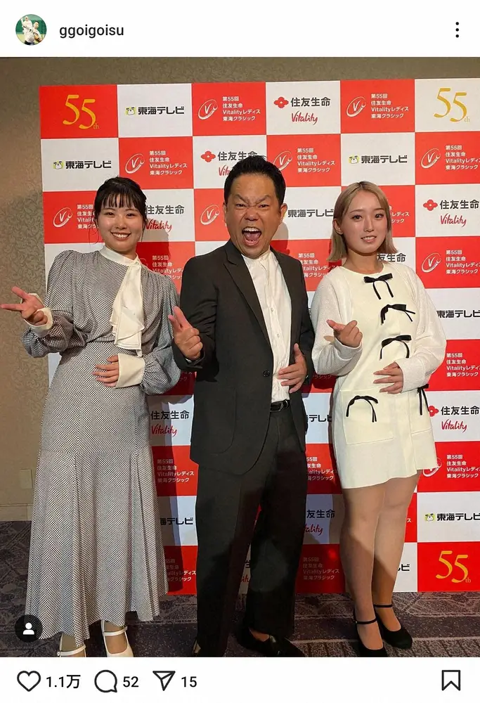 添えられた写真ではプロゴルファーの尾関彩美悠と清本美波が"ゴイゴイスー"ポーズを披露。尾関は自身のストーリーズで引用し「ありがとうございました」とお礼。また津田が「なんも言うてくれへんかった」という清本も、「ゴイゴイスー!!今日も面白かったでスー!!」とコメントした。