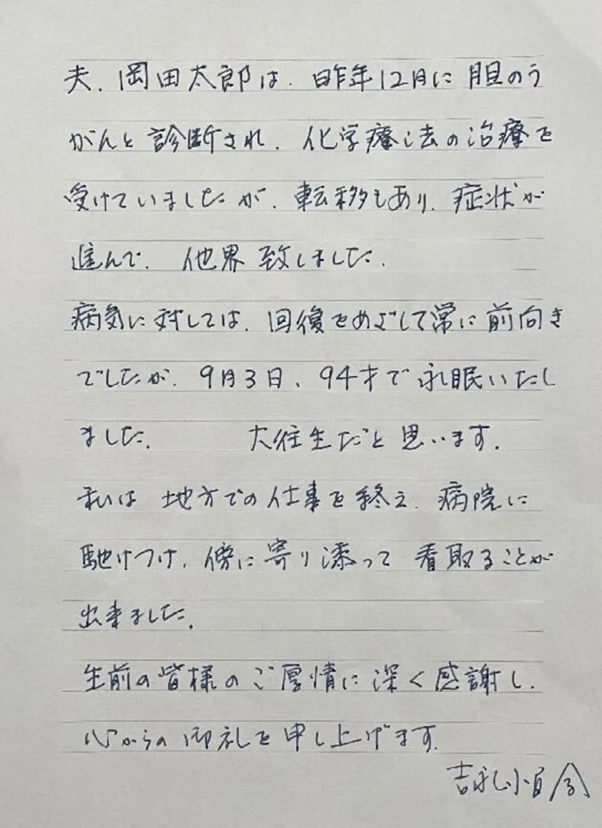1973年、岡田太郎氏と結婚式を挙げた吉永小百合 Photo by スポニチ 吉永小百合の夫で元共同テレビ会長の岡田太郎さん死去、94歳「大往生だと… ギャラリーで見る この記事のフォト 2024年09月13日の画像一覧 もっと見る 2024年09月13日の画像をもっと見る