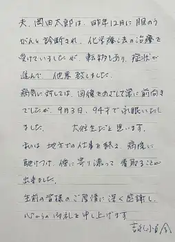 そして「ワイングラスを片手に大好きでいらした旅を、これからも次元を超えてお続けになってください。これから心に迫ってくる寂しさに対して、常に前向きな太郎さんを見習って、向き合っていきます」と旅立った岡田さんにメッセージと自身の決意を届けた。
