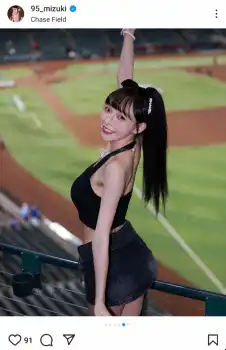 「チェイス・フィールド アリゾナはとっても暖かい MLBダイヤモンドバックスのホームスタジアム プールもあって素晴らしい」とつづり、米アリゾナ州フェニックスのMLBダイヤモンドバックスの本拠地、チェイス・フィールドでのチア姿のショットなどをアップした。同球場では、13日(日本時間14日)に「台湾デー」が開催された。