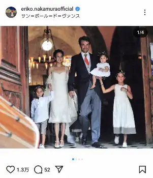 中村江里子 結婚23年目を報告し、結婚10年目の再結婚式ショット披露に「本当に美しいファミリー」の声