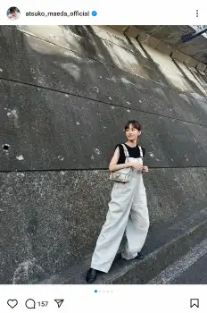 前田敦子「サロペット可愛すぎるー」まとめ髪の近影に「リアルペコちゃん」「スタイル良すぎ」の声