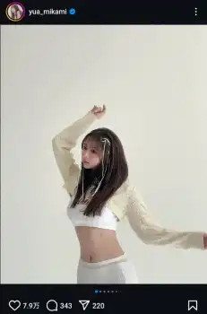 SKE48の元メンバーでタレントの三上悠亜(31)が16日までに自身のインスタグラムを更新。へそ出しショットを公開した。