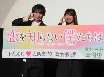 なにわ男子の大西流星(23)が18日、大阪市浪速区のなんばパークスシネマで初主演映画「恋を知らない僕たちは」(8月23日から全国公開中)の舞台あいさつに酒井麻衣監督(33)と出席した。