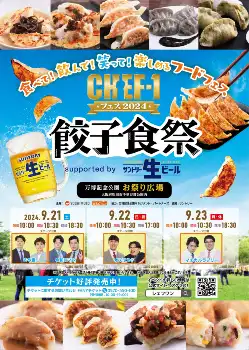 番組初の「餃子」をテーマにしたフードフェス『CHEF-1フェス2024~餃子食祭~supported by サントリー生ビール』が9月21日(土)から23日(月・休)の3日間、大阪・万博記念公園で開催されます。番組の審査員を務めてくださったミシュラン星付きレストランシェフの監修、歴代王者の監修、その他「CHEF-1」出場者、番組コラボなど、たくさんの餃子を準備しています!