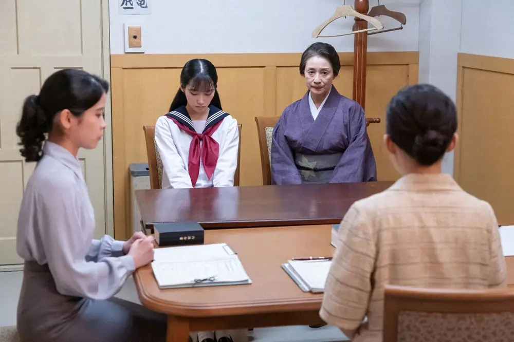 連続テレビ小説「虎に翼」第124話。(奥左から)審判に出席した並木美雪(片岡凜)と並木佐江子(辻沢杏子)は…(C)NHK